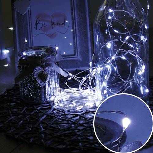 Mikro- Ledes Nano fényfüzér, 100 db diszkrét, kis méretű, hideg fehér leddel, 6/18H időzítővel. Extra vékony, szinte láthatatlan ezüst színű réz vezeték, 100 led, IP44 vízálló. 30 000 óra. Hossz: 10 m, tápvezeték 5 m. Használható kül- és beltéren, a ledek 4,5 voltosak, fogyasztás 3,6 W. Auto on/off. Az időzítő bekapcsolása esetén 6 órát világít, utána 18 órát nem! Kiválóan alkalmas esküvőkre, bulikra, teraszokra is! Life Light Led 2 év garancia!